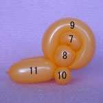 4cmほどのバブルをしぼりひねりにしてかかと(2)を作ってください。