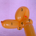 3.5cmほどのバブル(5)をしぼりひねりにします。