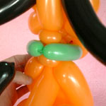 首のしぼりひねりの一つを胴体にくぐらせて頭と胴体をくっつけてください。