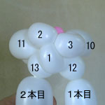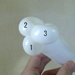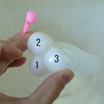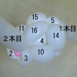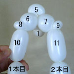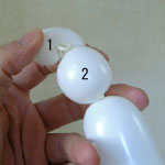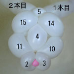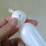 しぼりひねり(5)に2本目の風船を結び付けます。