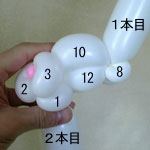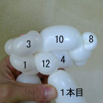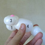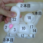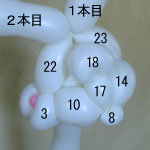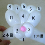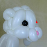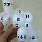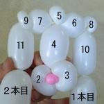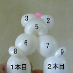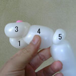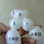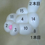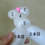 2本目のバルーン(長い方)を後頭部のしぼりひねり(5)から鼻の方に向けて、