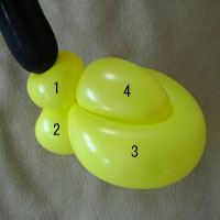 そしてバブル(4)を3の輪ひねりの中に押し込んでください。