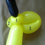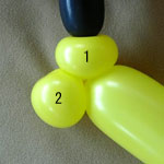 5cmぐらいのバブルを作ってピンチツイストにしてかかと(2)を作ってください。