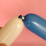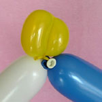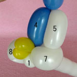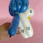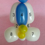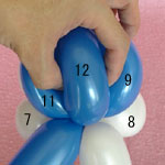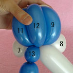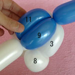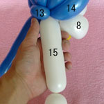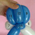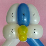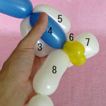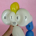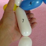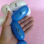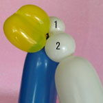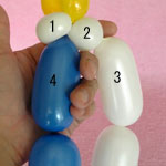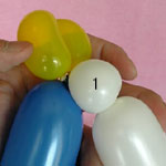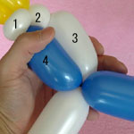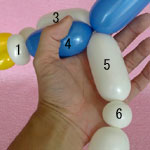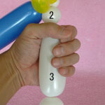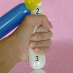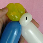 白のバルーンを使って2.5cmぐらいのバブル(1)をしぼりひねりにしてください。