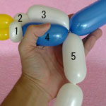 白で3や4と同じ大きさのバブル(5)をにぎりひねりで作ってください。