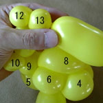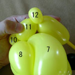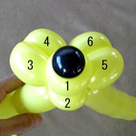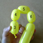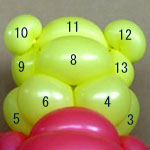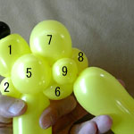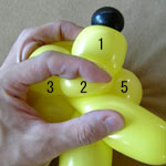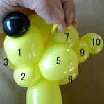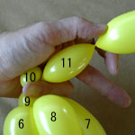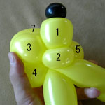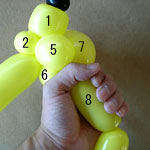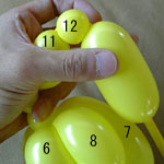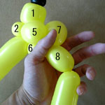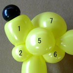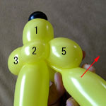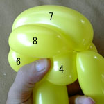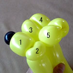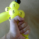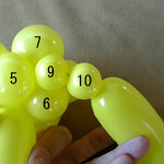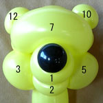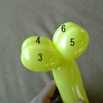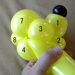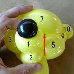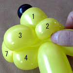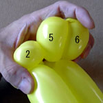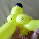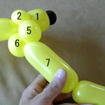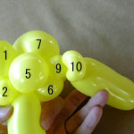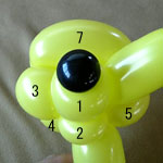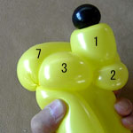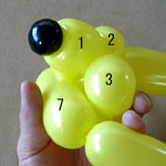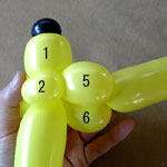 しっぽの長い方のバルーンを口(2)の付け根からほっぺ(5、6)のロックツイストの端まで