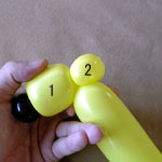 先ほど二つのバルーンをまとめたので余ったバルーンが2本残っているはずです。