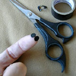 ビニールテープをくり貫いて目を作ってください。(目のシールの作り方参照)
