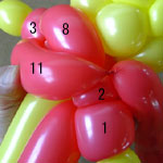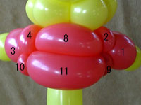 3cmのバブル(2)を作ってそのままピンチツイストにしてください。