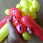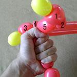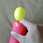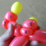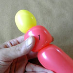 ここで余った両バルーンの空気を抜いて縛ってください。
