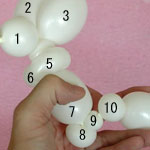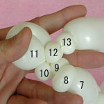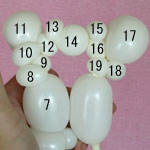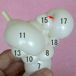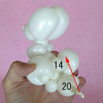 もう一つ1.5cmのバブル(13)を作って、こちらはピンチツイストにしてください。